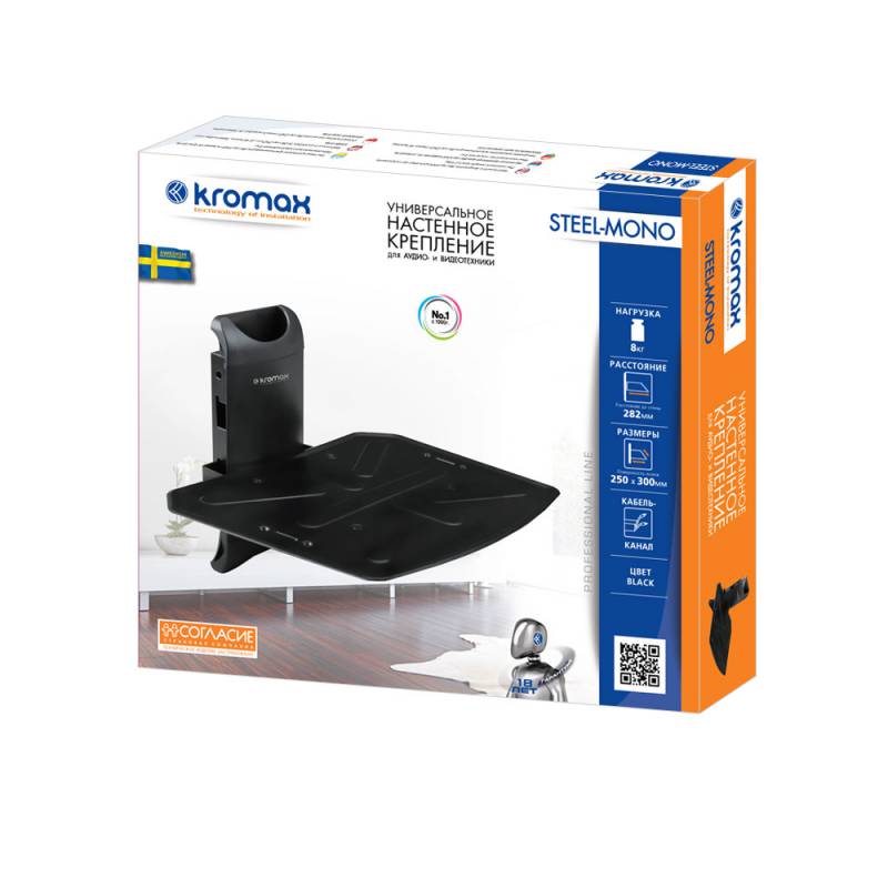 Кронштейн-подставка для DVD и AV систем Kromax Steel-Mono черный макс.8кг настенный